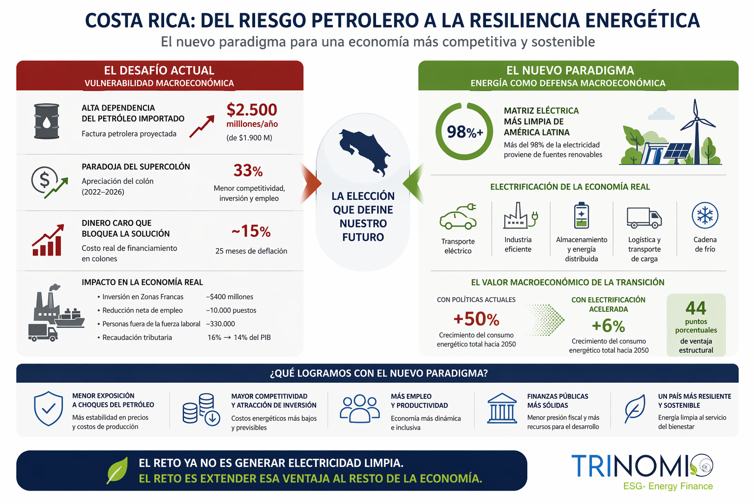 Fundada por expertos de nivel senior de las industrias financiera y energética, apasionados por la sostenibilidad y el aprovechamiento de las oportunidades que se presentan con la innovación tecnológica, Trinomio ESG-Energy Finance nace de la convicción de que las finanzas y la energía deben colaborar estrechamente para construir un futuro sostenible, lo que acelerará la transición energética. Iniciamos nuestro recorrido con una cartera de proyectos de energía distribuida y eficiencia energética, financiando con éxito una iniciativa solar comunitaria que consolidó nuestro compromiso con las inversiones de impacto.